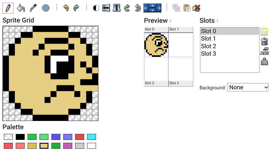 Now that we have a basic concept of what the game will be, let’s do some hard work. As usual, I’m using Jannone’s TinySprite to create a mock-up for our deadly meteor character, which will be used as it is for now but might improve in the future.
